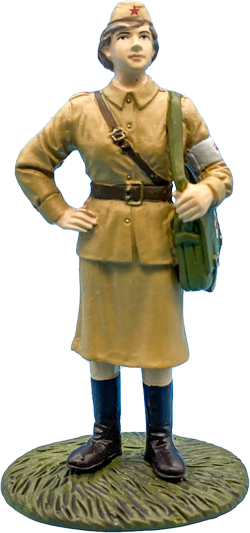 Κατά τη διάρκεια του Β’ Παγκόσμιου Πολέμου η Σοβιετική Ένωση ήταν η μοναδική χώρα που επέτρεψε την ενεργή συμμετοχή των γυναικών, τόσο στα μετόπισθεν όσο και στην πρώτη γραμμή. Πολλές κατάφεραν να διακριθούν ως ελεύθερες σκοπεύτριες, ως μέλη πληρωμάτων αρμάτων μάχης, ακόμη και ως πιλότοι μαχητικών. Όσες εντάχθηκαν στο υγειονομικό ήταν επιφορτισμένες με την φροντίδα του μεγάλου αριθμού τραυματιών στο πεδίο της μάχης. Η στολή τους αποτελούταν από χακί χιτώνιο που κούμπωνε με πέντε επίχρυσα κουμπιά, το περιβραχιόνιο με το έμβλημα του ερυθρού σταυρού, δερμάτινη, καφέ ζώνη με χιαστί ιμάντα, το εμβληματικό δίκοχο – γνωστό ως πιλότκα –, μια πράσινη τσάντα με το ιατρικό υλικό, φούστα που έφτανε μέχρι τα γόνατα και ψηλές, μαύρες, δερμάτινες μπότες.